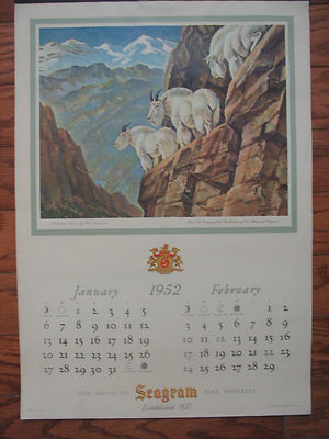 Title (ebay affiliate link): 1952 HOUSE SEAGRAM WHISKEY CALENDAR Mountain Goat-Quail-Blue Teal-Crappie-Perch