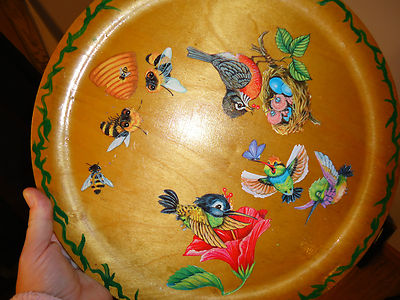 Title (ebay affiliate link): OLE MAPLE PARRISH WOOD BAR SERVING TRAY 14" PAINTED WITH BUTTERFLIES BIRDS BEES