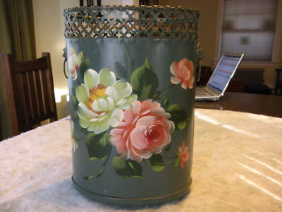 Title (ebay affiliate link): French Cottage Chic Vintage Toleware Trash Can Waste Basket Shabby Lion Heads