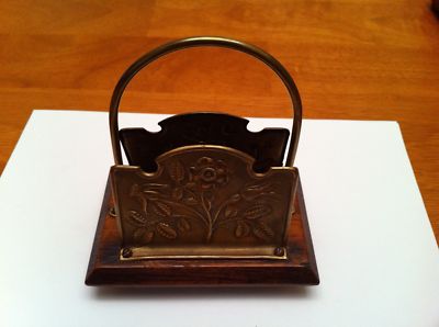 Antique Brass and Oak Letter or Napkin Holder