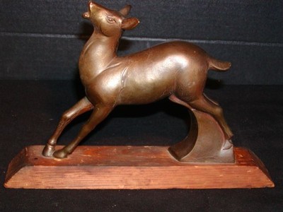Title (ebay affiliate link): ANTIQUE CLOCK TOPPER - Art Deco / Nouveau DEER, Brass, atop Wooden Plinth