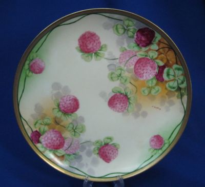 Title (ebay affiliate link): HANDPAINTED CLOVER FLOWERS ARTIST SIGNED J BARIN LIMOGES CABINET PLATE