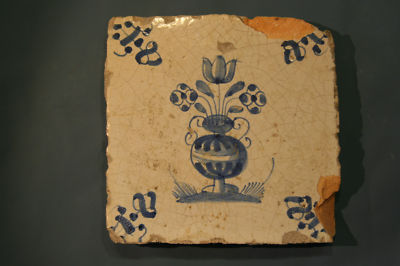 17th Century Delft Tile - Flowers & Vase - c. 1650