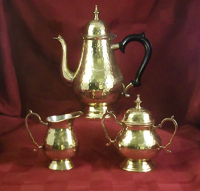 Antique Beautiful Brass Hand Hammered Tea Set Onyx Handle?