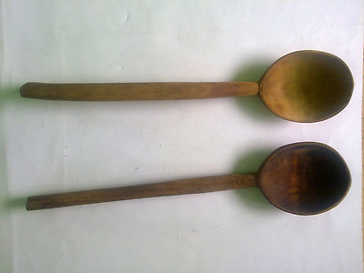 Title (ebay affiliate link): Antique 2 Authentic Handmade Huge Wooden Carved Spoons