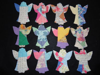 Title (ebay affiliate link): 12 PRIMITIVE ANTIQUE FOLK ART CUTTER QUILT CHRISTMAS ANGELS