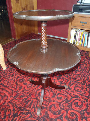 ANTIQUE TWO TIER PIE CRUST TABLE
