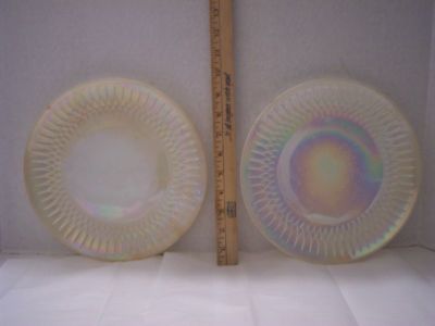 2 White Federal Glass Irredescent Milk Glass 9 3/4" Plates NR
