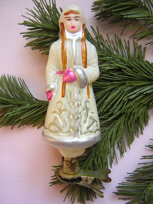 OLD RUSSIAN GLASS XMAS ORNAMENT SNOW MAIDEN