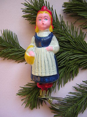 OLD RUSSIAN GLASS CHRISTMAS ORNAMENT RED CAP