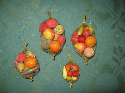 Title (ebay affiliate link): 4 Gold Mesh Bags of Vintage Millinery Fruit for Santa Figures Christmas