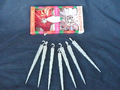 Title (ebay affiliate link): VINTAGE LIGHT BULB REFLECTORS! ORIG BOX! PLUS 7 PURPLE GLOW-IN-THE-DARK ICICLES!