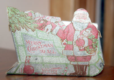 Title (ebay affiliate link): Early Pre-World War I. Paper Candy Container, Santa Claus posing with Sleigh.