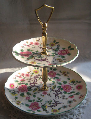 OLD FOLEY JAMES KENT LTD CHINESE ROSE 2 TIERED CAKE PLATE