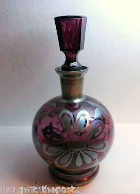 ANTIQUE STERLING OVERLAY BOTTLE~DECANTER~ AMETHYST BEAUTY ~ART NOUVEAU #17 M