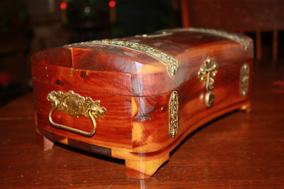 Title (ebay affiliate link): antique vintage deco cedar jewelry box spider mirror & contents pleated interior