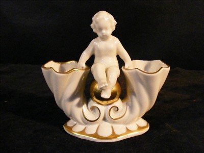 OLD GEROLD & CO. BAVARIA PORCELAIN DOUBLE VASE WITH CHERUB