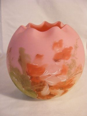 ART GLASS ROSE BOWL - BURMESE RUFFLED VASE WITH FLOWERS