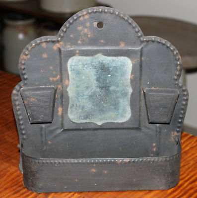 VINTAGE ANTIQUE WALL METAL TIN COMB BRUSH POCKET MIRROR MATCH HOLDER