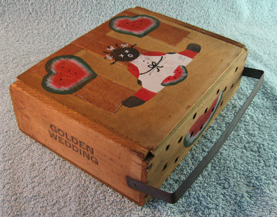 Wood Cigar Box Hand Painted Folk Art ,Golden Wedding