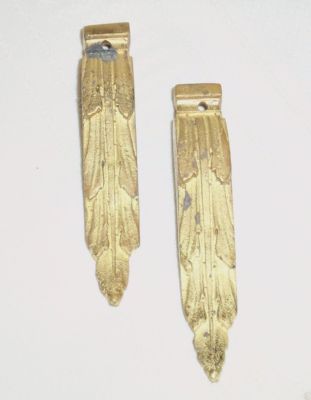 Title (ebay affiliate link): 2 ANTIQUE Gilt Brass Ornamental HARDWARE TRIM Furniture APPLIQUE Clock Adornment