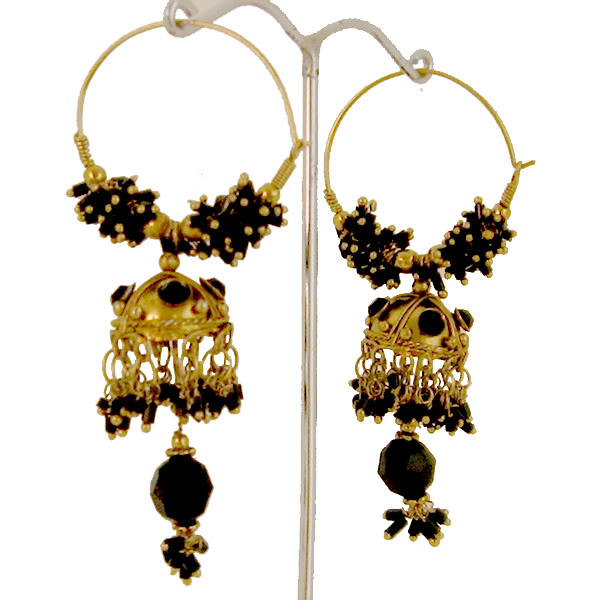 TRENDY ANTIQUE FINISH KUNDAN BEADS HOOP EARRINGS~INDIA