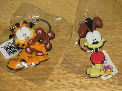 Title (ebay affiliate link): RARE 2 Vintage Garfield Rubber Raised Paws Key Chains, Garfield Pooky Odie, NIP