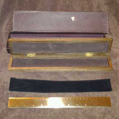 Title (ebay affiliate link): Retro brass 12" ruler in wooden crafted box and in another old box