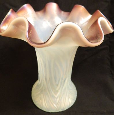 BEAUTIFUL Early 1900s WHITE & PURPLE Irridized RUFFLED Victorian LOETZ Type VASE