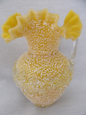 Title (ebay affiliate link): OLD Early VICTORIAN Yellow White MOTTLED Applied ART GLASS Ruffled PITCHER VASE