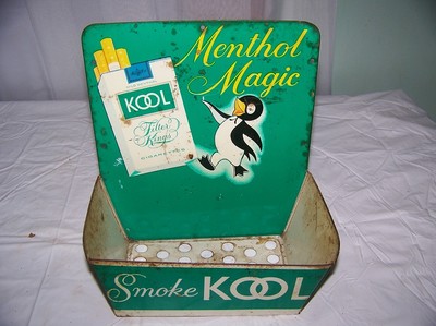 Title (ebay affiliate link): Vintage 1950's Kool Cigarettes Tobacco Metal Store Display Rack Sign W/Penguin