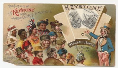 Keystone Uncle Sam Farm Implements Mechanical Trade Card, Sterling, IL