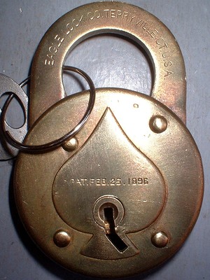 Title (ebay affiliate link): PAT 1896 antique EAGLE poker card blackjack SPADE padlock lock w key
