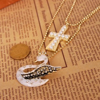 New Arrived Antique Style Fashion Necklaces Rhinestone Cygnet Cross Pendants HOT