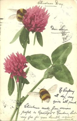 Title (ebay affiliate link): FINE BEE VISITS FLOWERS SENT ON CHRISTMAS DAY 1903 OLD POSTCARD