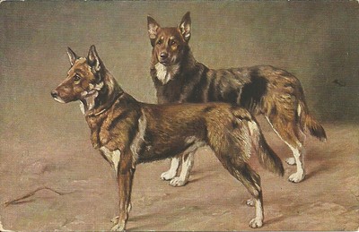 ALSATIAN DOG PAIR SUPERB OLD POSTCARD