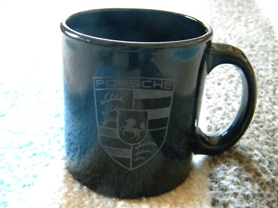 Title (ebay affiliate link): Black Porsche coffee mug with shield design