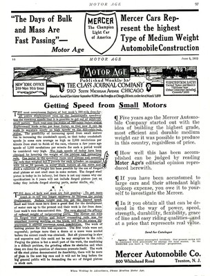 1912 Unusual MERCER Champion Light CAR AD. Motor Age Magazine Editorial