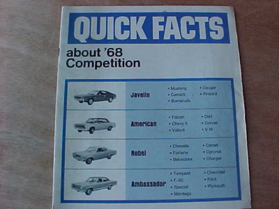 Title (ebay affiliate link): 1968 AMERICAN MOTORS AMC QUICK FACTS DEALER INDEXED SALESMENS CATALOG RARE EXC!
