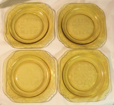 FEDERAL MADRID AMBER DEPRESSION GLASS-4 7 3/8" SALAD