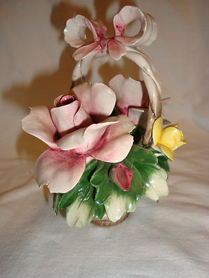 Title (ebay affiliate link): Capodimonte Pink/Yellow Flower Basket with Bow on Handle 6"