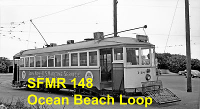 Title (ebay affiliate link): TROLLEY NEGATIVE: SAN FRANCISCO MUNI 148 US MARITIME PAINT OCEAN BEACH LOOP 1945