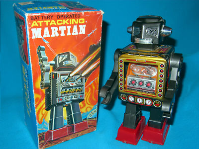 VINTAGE TIN ROBOT ATTACKING MARTIAN HORIKAWA 1966 W/BOX !