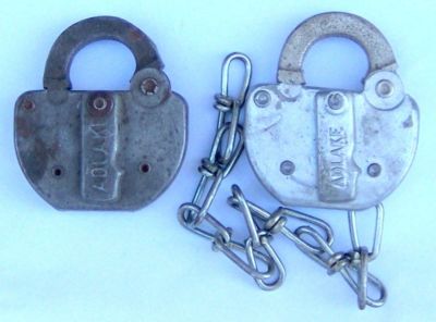 PADLOCK LOCK VINTAGE OLD ANTIQUE PAIR 1 WITH CHAIN