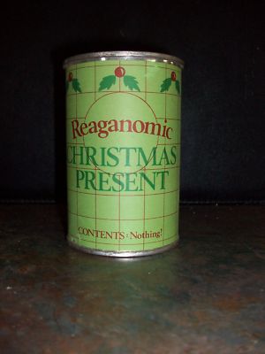 Title (ebay affiliate link): REAGANOMIC CHRISTMAS PRESENT IN A CAN CAMPAIGN JOKE 1982 FUNNY JAB