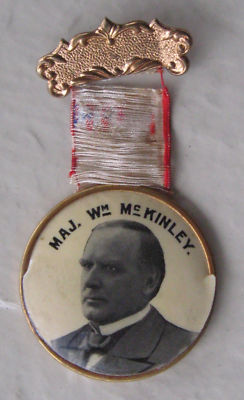 Title (ebay affiliate link): 1896 MAJ. WM WILLIAM McKINLEY Political Campaign 1-3/4 inch PIN w/ Ribbon excel