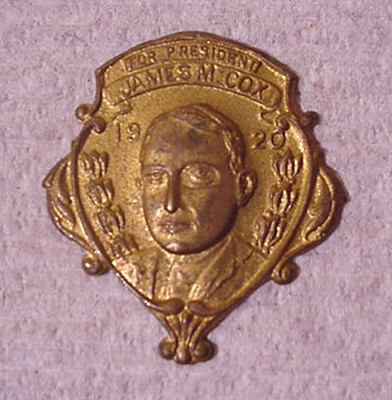 Title (ebay affiliate link): James M. Cox For President 1920 Vermeiled Brass Political Item