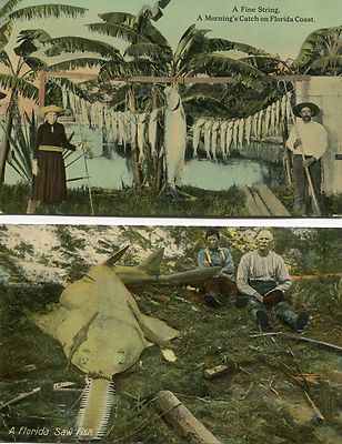 Title (ebay affiliate link): Two Vintage Postcards showing Sawfish, Tarpon and a Stringer of Fish in Florida