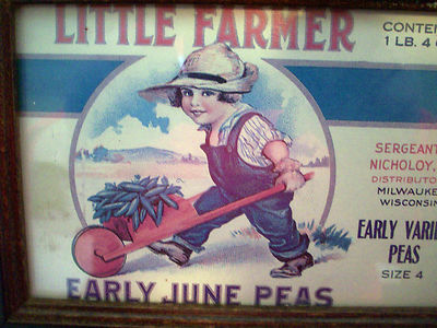 Title (ebay affiliate link): Small Framed Picture - Wood Frame - Little Farmer - Early June Peas
