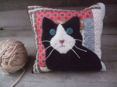 Antique Primitive Log Cabin Black Cat Pillow - Folk Art